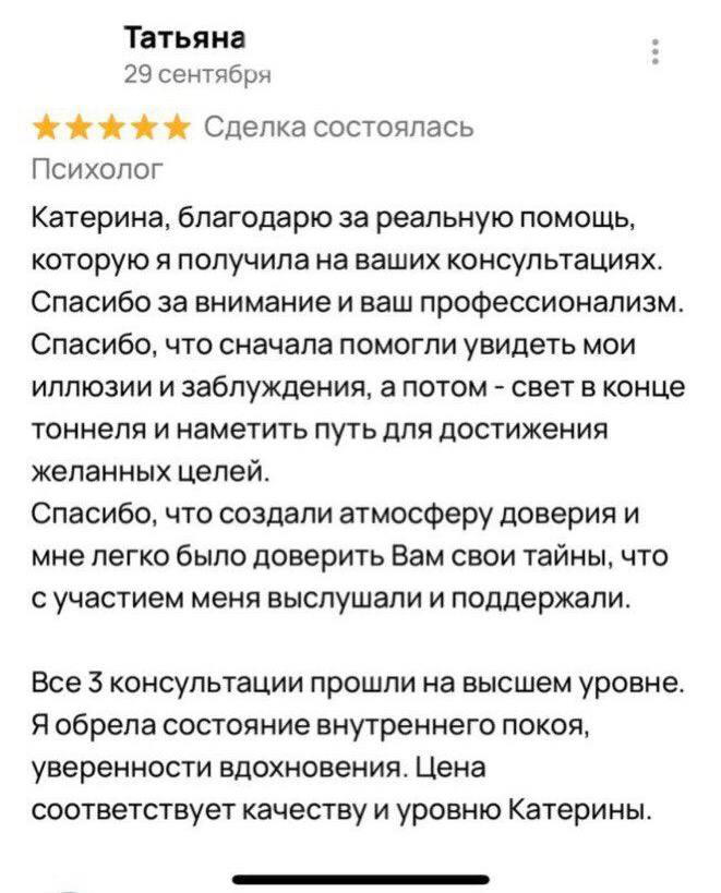 В работе я опираюсь на методы КПТ, схема-терапии, трансовой терапии и проработки глубинных психотравм, чтобы помочь не просто снять симптомы, а обрести настоящую, устойчивую опору в себе. И я счастливая мама троих детей, которая на своем опыте знает, как важно быть в мире с собой.