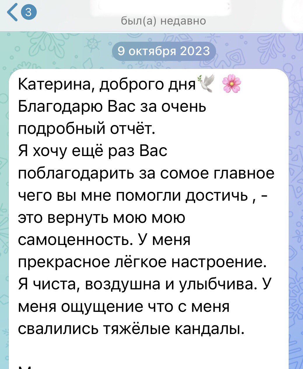 В результате терапии Елена написала: