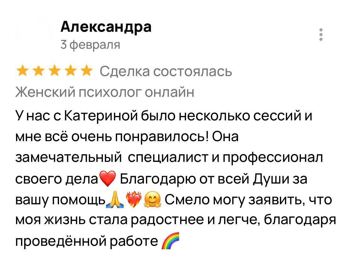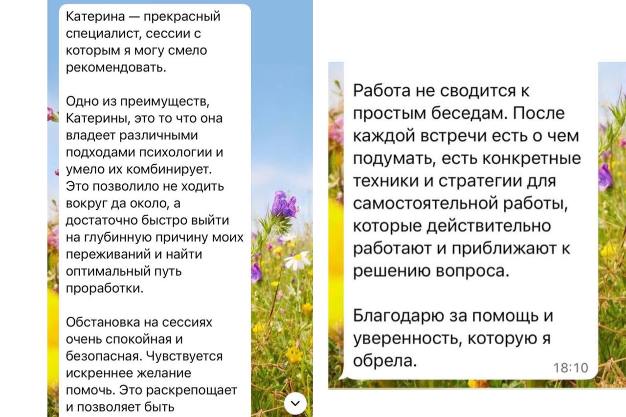 Первые изменения вы почувствуете уже после 1-3 сессий. Устойчивый результат формируется от 5 встреч и зависит от глубины запроса, опыта из прошлого и вашей вовлеченности в процесс. Я помогу пройти этот путь осознанно и бережно