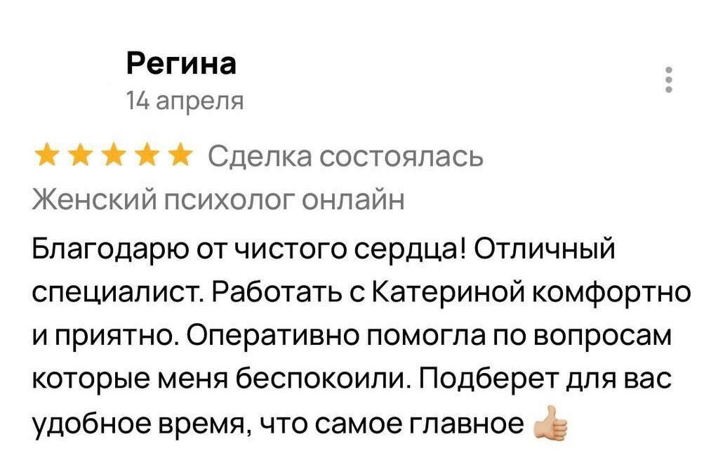 Меня зовут Катерина Березина. Я психолог, который помогает женщинам вернуть себе уверенность и внутренний стержень.