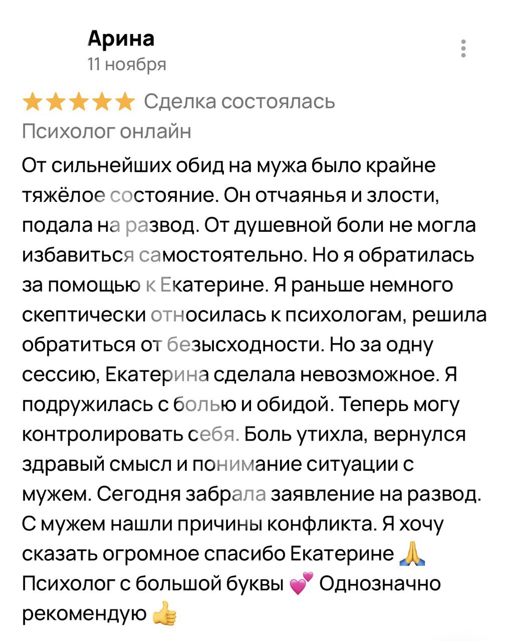 В результате терапии Мария сообщила: